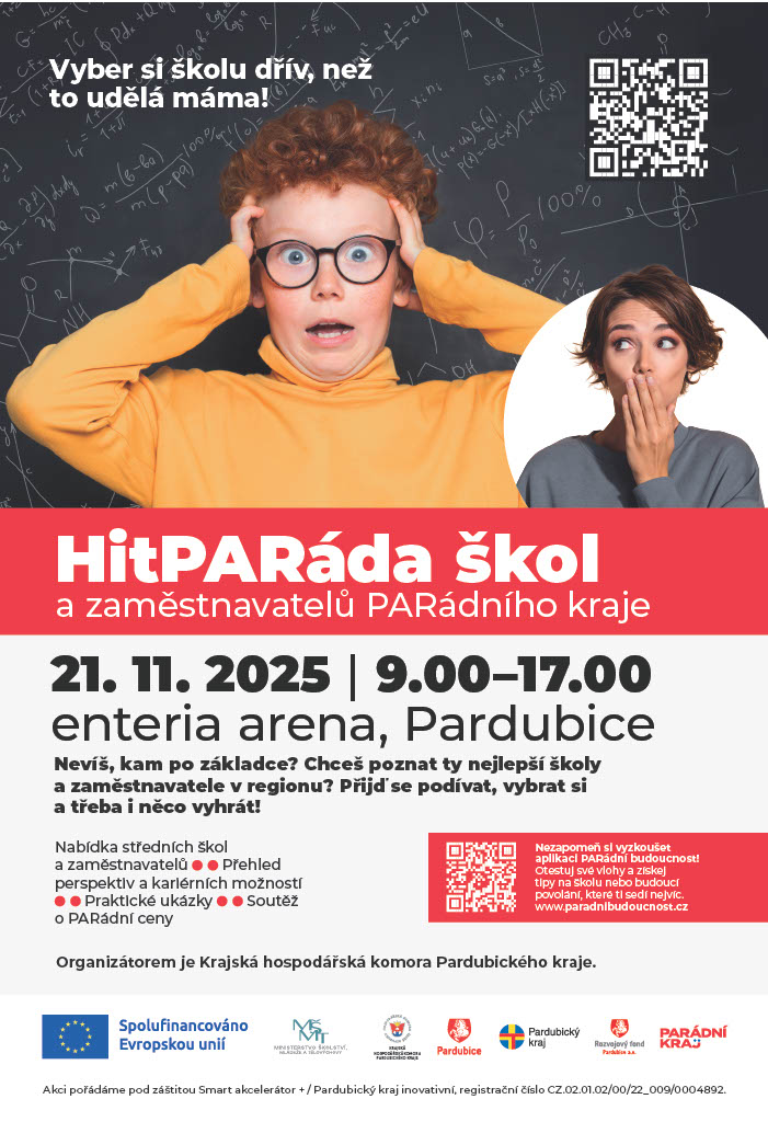 Už brzy se opět otevřou brány Přehlídky škol a zaměstnavatelů Pardubického kraje – tradiční akce, která propojuje svět vzdělávání a praxe. Žáci, rodiče i veřejnost se mohou těšit na desítky škol, firem a institucí , které představí své obory, projekty i pracovní příležitosti.