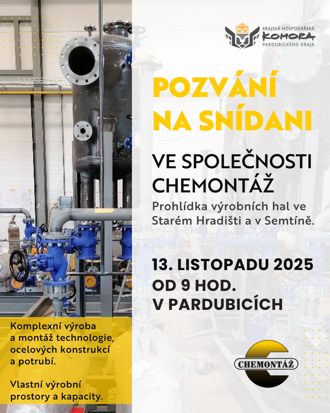 Pozvánka na snídani ve společnosti CHEMONTÁŽ - 13.11.2025, Pardubice