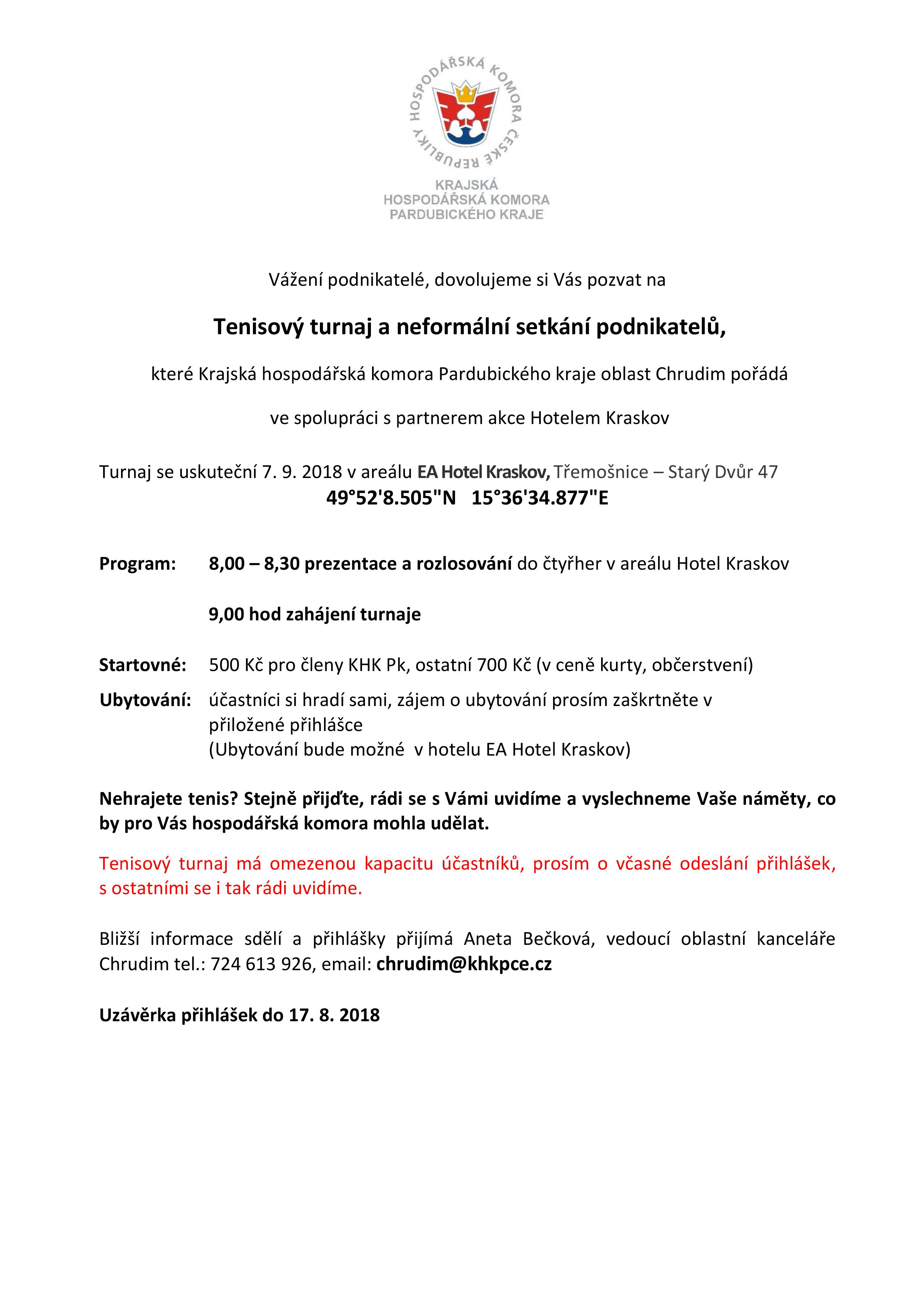Uskutečnil se Tenisový turnaj a neformální setkání podnikatelů v areálu EA Hotel Kraskov